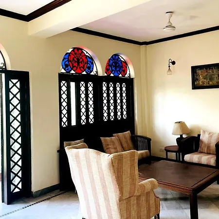 Una cocina completa es ideal para preparar comidas caseras. Con acceso al resto de Nueva Delhi, la estación de metro R. K. Puram está a unos 5 minutos a pie.